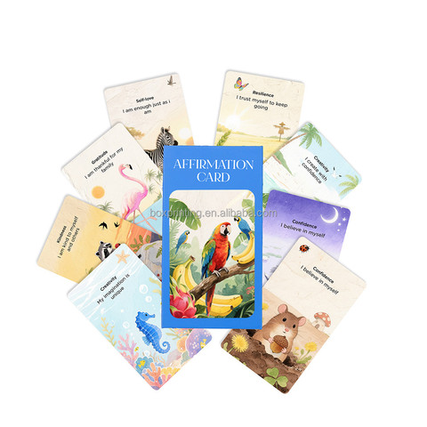 משחק קלפים עם הצהרות אישיות למבוגרים, הדפסה בהתאמה אישית עם לוגו, קלפי הצהרות חיוביות יומיות עם קופסה מגנטית