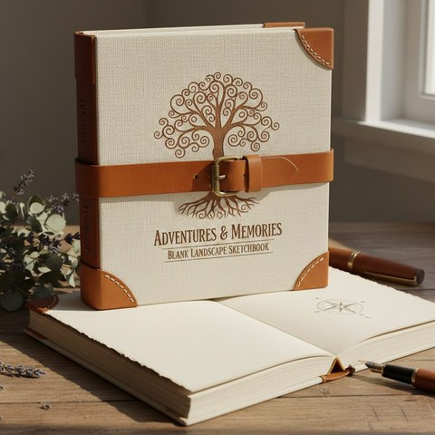 Caderno Personalizado de Capa Dura em Tecido Linho, Caderno de Esboços em Paisagem em Couro, Livro de Memórias para Aniversário