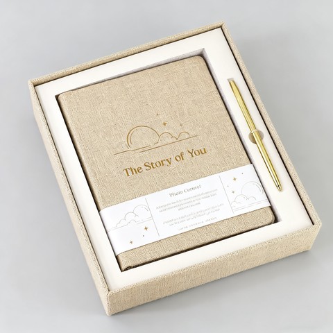Impressão personalizada Soft Linen Fabric Baby Memory Record Journal Supplies Planner Notebook Hardcover com linho Gift Keepsale Box